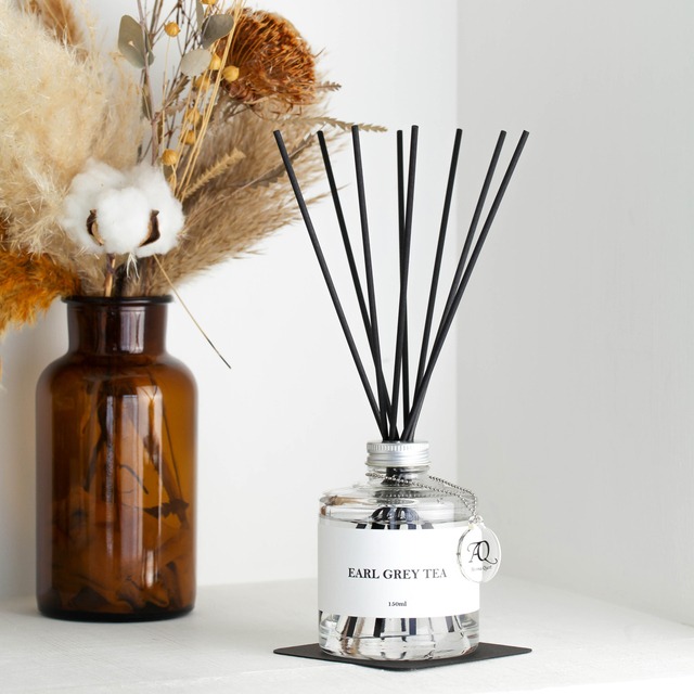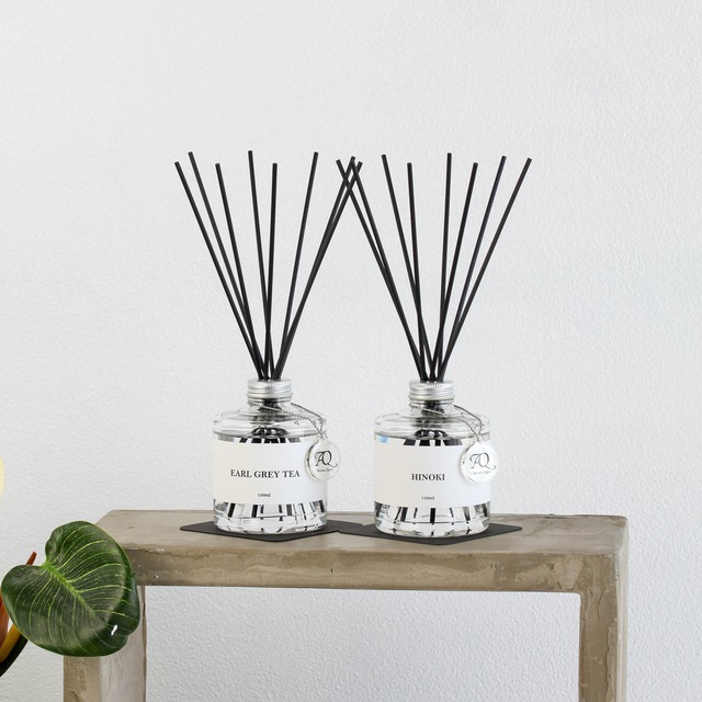 ・光沢感のあるラベルデザインと存在感のあるラタンスティックが、洗練された印象を与えます。