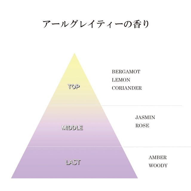 ・華やかなフローラルノートを基調とし、紅茶の上品な香りとベルガモットの爽やかな香りが絶妙にブレンドされた、贅沢な香りです。