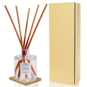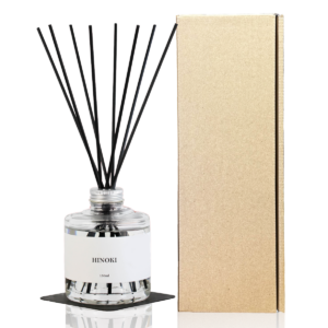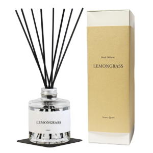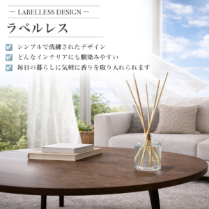 ・光沢感のあるラベルデザインと存在感のあるラタンスティックが、洗練された印象を与えます