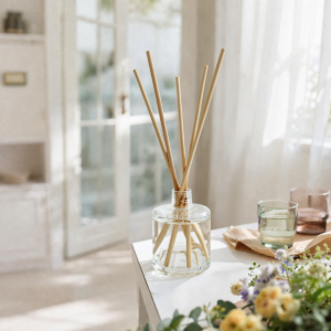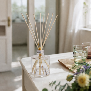 ・クリアなボトルラベルとサンドホワイトのスティックが調和し、穏やかで清らかな空気感を生み出します
