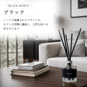 ブラック:シックで洗練されたデザインが、モダン空間に調和し、上質な香りを引き立てます